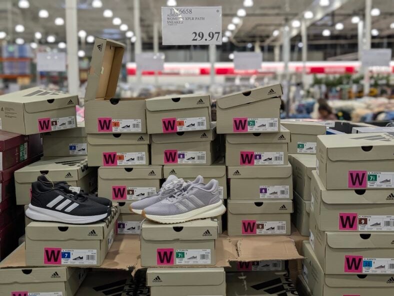 These versatile sneakers transition seamlessly from gym workouts to casual weekend outings effortlessly. The neutral colorway pairs well with athletic wear and everyday casual clothing options. Costco members can score these popular Adidas sneakers at their typical warehouse pricing.