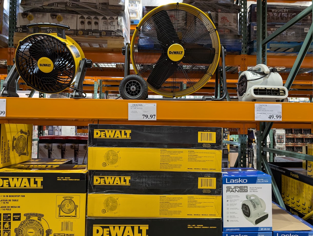 This Dewalt drum fan delivers serious airflow power for workshops and garages. The 6500 CFM output moves air efficiently through large spaces needing ventilation. Professional contractors and DIY enthusiasts appreciate the stepless speed control feature.