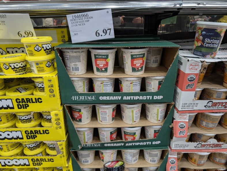 Heritage Foods brings Mediterranean flavors together in this creamy antipasti dip. The blend combines provolone cheese with artichokes, uncured salami, and Kalamata olives. Pepperoncini adds a tangy kick that balances the rich, savory elements perfectly.