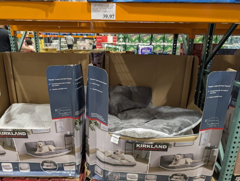 This versatile pet bed combines durability with comfort at Costco’s unbeatable value. The tufted design adds visual appeal while preventing filling from shifting unevenly. Your pet will appreciate the spacious square layout for stretching out.
