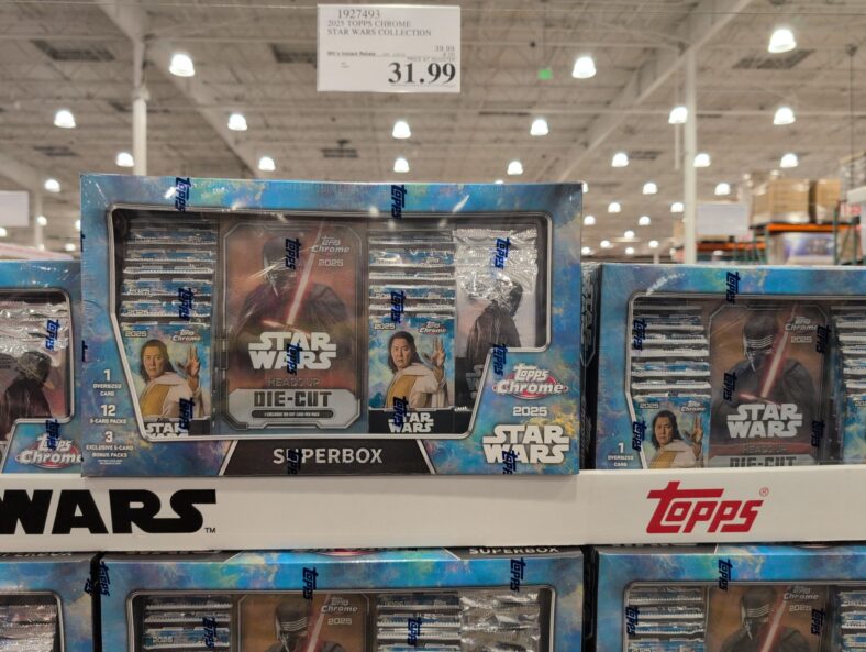 Star Wars collectors, this one’s for you! The 2025 Topps Chrome Star Wars Collection just landed at Costco in Concord, and it’s priced at $39.99 with a manufacturer’s instant rebate that’s good through December 2025.
