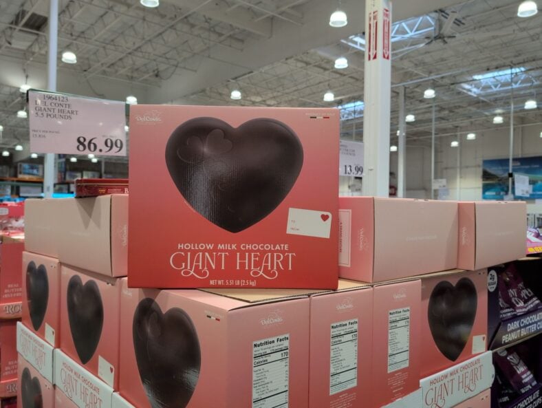 The Del Conte Giant Heart is exactly what it sounds like: a massive, beautifully crafted chocolate heart that’s designed to wow. It’s the kind of thing that makes people stop and say “wait, you got that at Costco?” The chocolate quality is solid, with a smooth texture and rich flavor that doesn’t taste artificial or waxy like some novelty chocolates can.