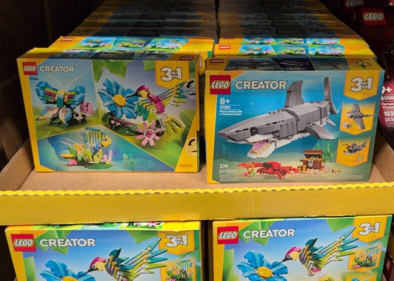 If you’re looking for a creative gift or just want to add to your LEGO collection, Costco has a fun Creator 3-in-1 set that caught our eye. This one gives you three different builds in a single box—a shark with treasure chest, a colorful hummingbird, and a third option to keep things interesting.