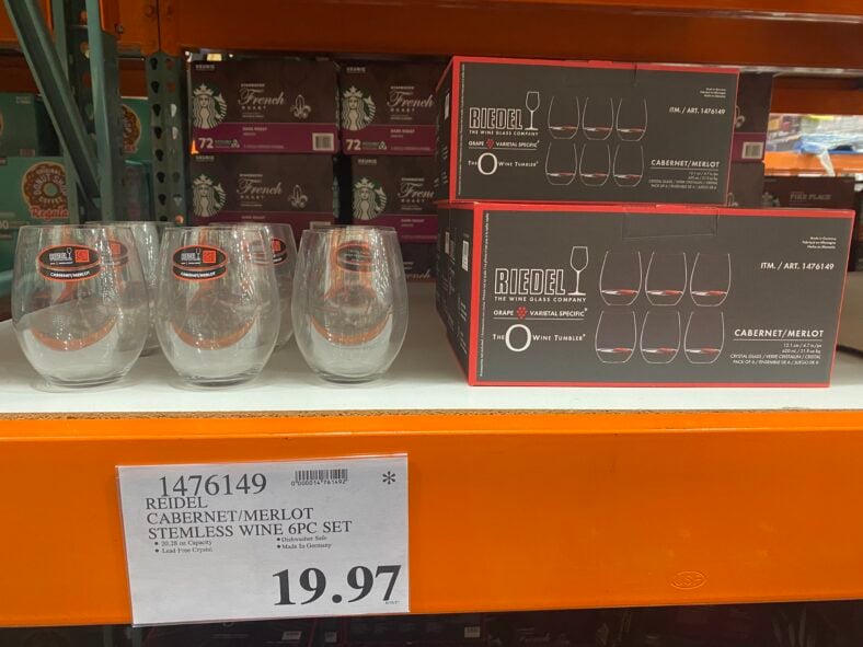 Riedel Stemless Red Wine Glass 6 Pack Costco97 August 16, 2021 SHARE Share on Twitter Twitter Share via Email Email *** DEAL LIKELY EXPIRED *** GlasswareWine Product Info Price: $19.97 - $39.97 Item #: 1476149 Size/Qty: 6 glasses Confirmed Locations: Chantilly, VA Danville, CA 2 Comments Juliette Feffer says: July 13, 2021 at 7:14 am Where do I find the Yasso Greek Yogurt on sale. I went to costco Holbrrok and they didn’t know what I was talking about!!! Reply Evelyn says: February 3, 2022 at 11:17 am I wanted to buy the Reidel stemless wine glasses pictured above but Costco isn’t carrying them now. Any idea if they’re seasonal and if so, when they’ll be back? Reply Leave a Reply Cancel replyYour email address will not be published. Required fields are marked *Comment * Name * Email * Save my name, email, and website in this browser for the next time I comment.
