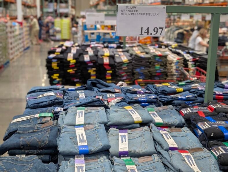 - Traditional five-pocket design with signature Wrangler stitching